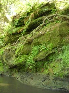 One of my favorite stretches of this river is lined with moss-covered rock. As we paddled through, we could feel the air temperature dip. It was cool and dark, and we looked up and marveled at tree roots growing right out of the cliffs.